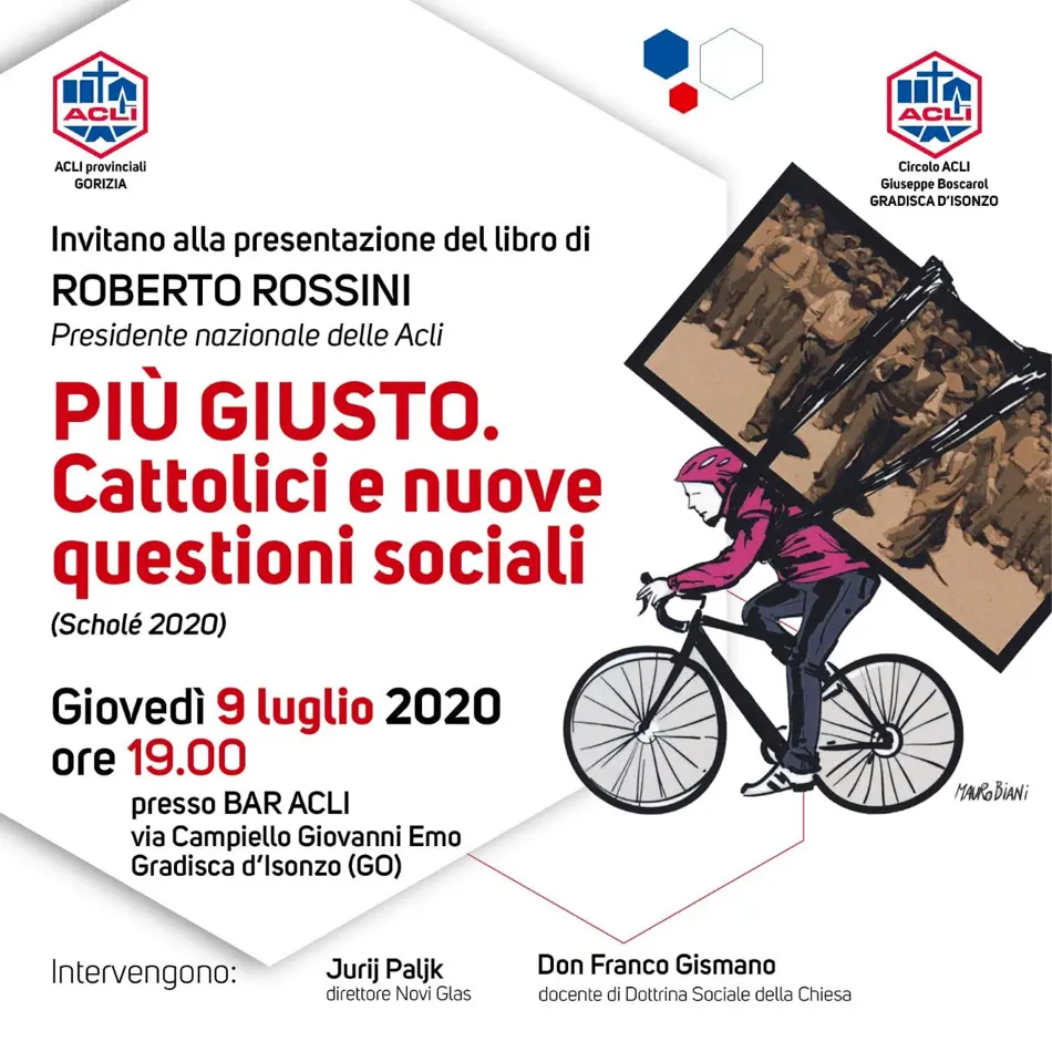 Giovedì 9, alle 19, si terrà la presentazione del libro di Rossini “Più giusto. Cattolici e nuove questioni sociali”, presso il circolo aclista di Gradisca d’Isonzo.