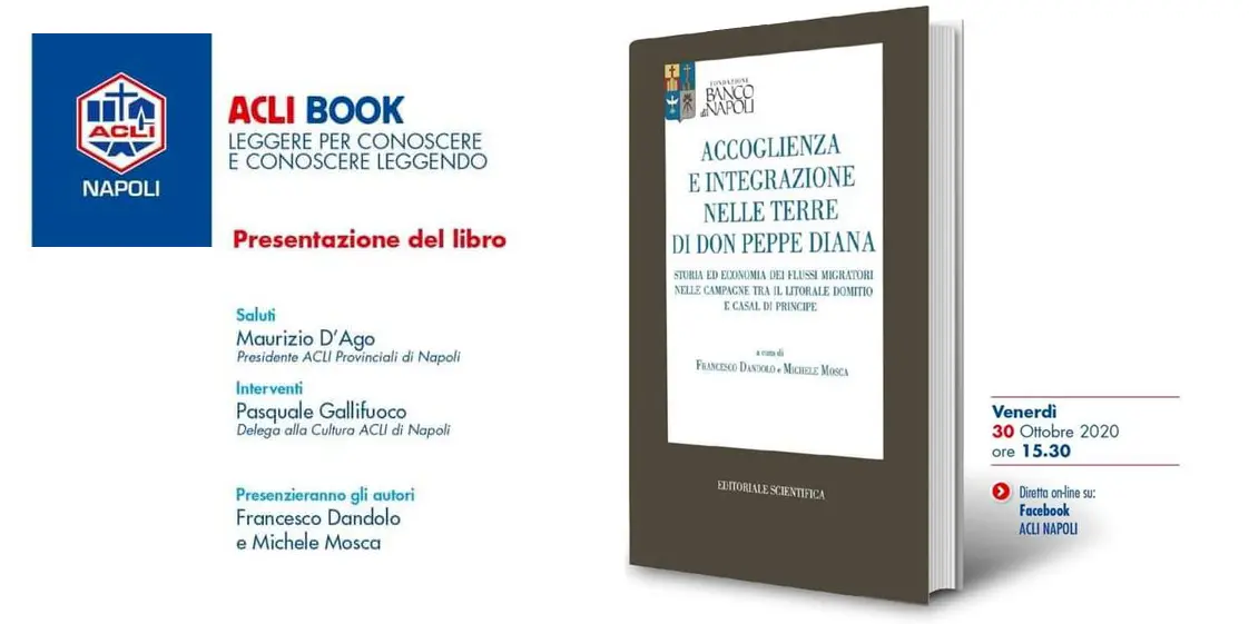 “Accoglienza e integrazione nelle terre di Don Peppe Diana” è il titolo del volume che verrà presentato venerdì 30 ottobre alle 15.30, in diretta facebook sulla pagina dell’associazione, alla presenza degli autori Francesco Dandolo e Michele Mosca.