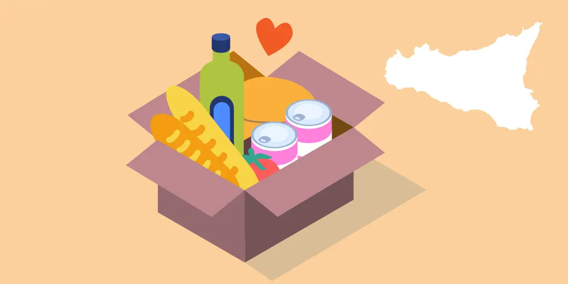 Ogni cesto contiene prodotti tipici regionali, ovvero: due pani prodotti con grani antichi siciliani; una caciotta da un chilo di primo sale; una bottiglia di olio E.V.O. Dop.