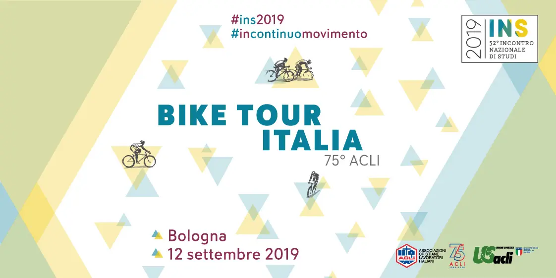 Il 52° Incontro Nazionale di Studi delle ACLI a Bologna, si apre il 12 settembre 2019 con il Bike Tour Italia, organizzato e promosso da ACLI e US ACLI in occasione del 75° anniversario della fondazione, 1945-2020 #75annidifuturo.