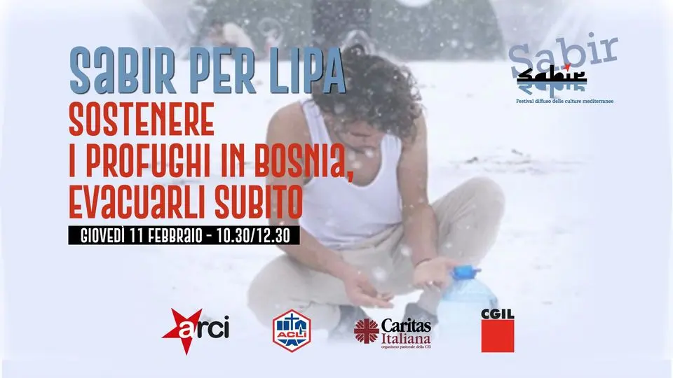 “Sabir per Lipa: sostenere i profughi in Bosnia, evacuarli subito”. Questo l’evento promosso per giovedì 11 febbraio dagli organizzatori del festival Sabir, ARCI, Caritas Italiana, ACLI, CGIL, per denunciare quanto sta avvenendo nei Balcani e lanciare l’appello ‘Diritti e solidarietà per i profughi in Bosnia Herzegovina’.