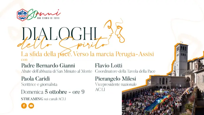 Il dialogo sarà l’occasione per prepararci alla Marcia della Pace Perugia-Assisi, in programma il prossimo 12 ottobre, alla quale prenderanno parte numerosi aclisti da tutta Italia e una folta delegazione della Presidenza nazionale ACLI guidata dal presidente Emiliano Manfredonia.