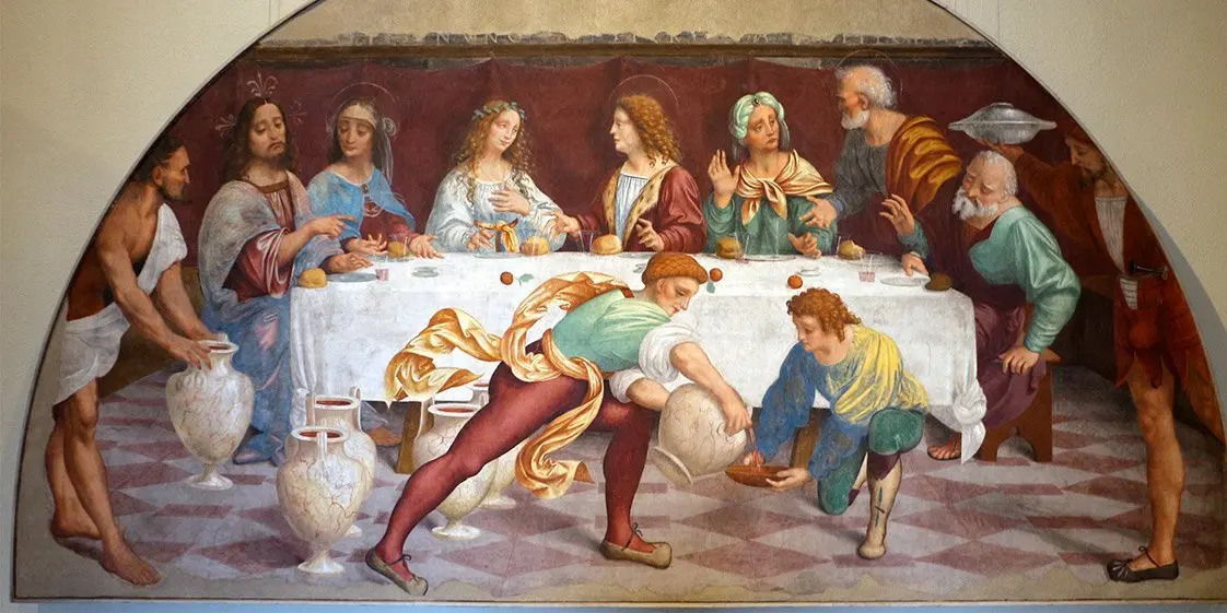 Come ebbe assaggiato l’acqua diventata vino, colui che dirigeva il banchetto – il quale non sapeva da dove venisse, ma lo sapevano i servitori che avevano preso l’acqua – chiamò lo sposo e gli disse: «Tutti mettono in tavola il vino buono all’inizio e, quando si è già bevuto molto, quello meno buono. Tu invece hai tenuto da parte il vino buono finora».