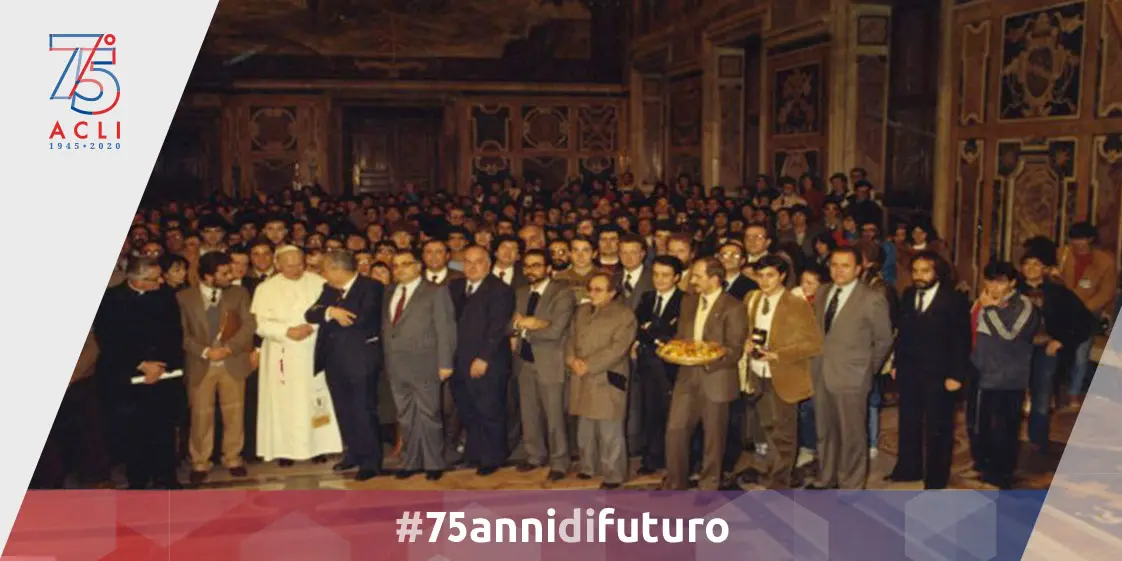 È ai giovani delle ACLI che il Giovanni Paolo II concede un’udienza riservata che si tiene presso la Sala Clementina in Vaticano, nell’ambito del XVI Congresso Nazionale di Gioventù Aclista (Roma, 3-6/1/1983).