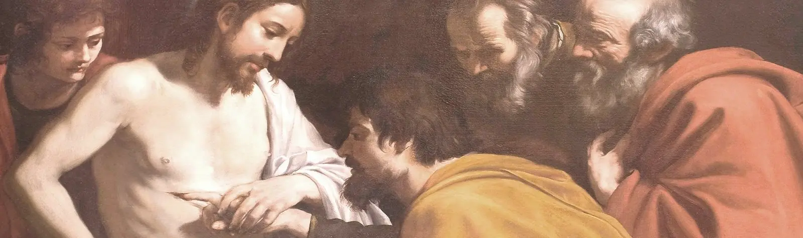 Otto giorni dopo i discepoli erano di nuovo in casa e c’era con loro anche Tommaso. Venne Gesù, a porte chiuse, stette in mezzo e disse: «Pace a voi!». Poi disse a Tommaso: «Metti qui il tuo dito e guarda le mie mani; tendi la tua mano e mettila nel mio fianco; e non essere incredulo, ma credente!». Gli rispose Tommaso: «Mio Signore e mio Dio!». Gesù gli disse: «Perché mi hai veduto, tu hai creduto; beati quelli che non hanno visto e hanno creduto!».