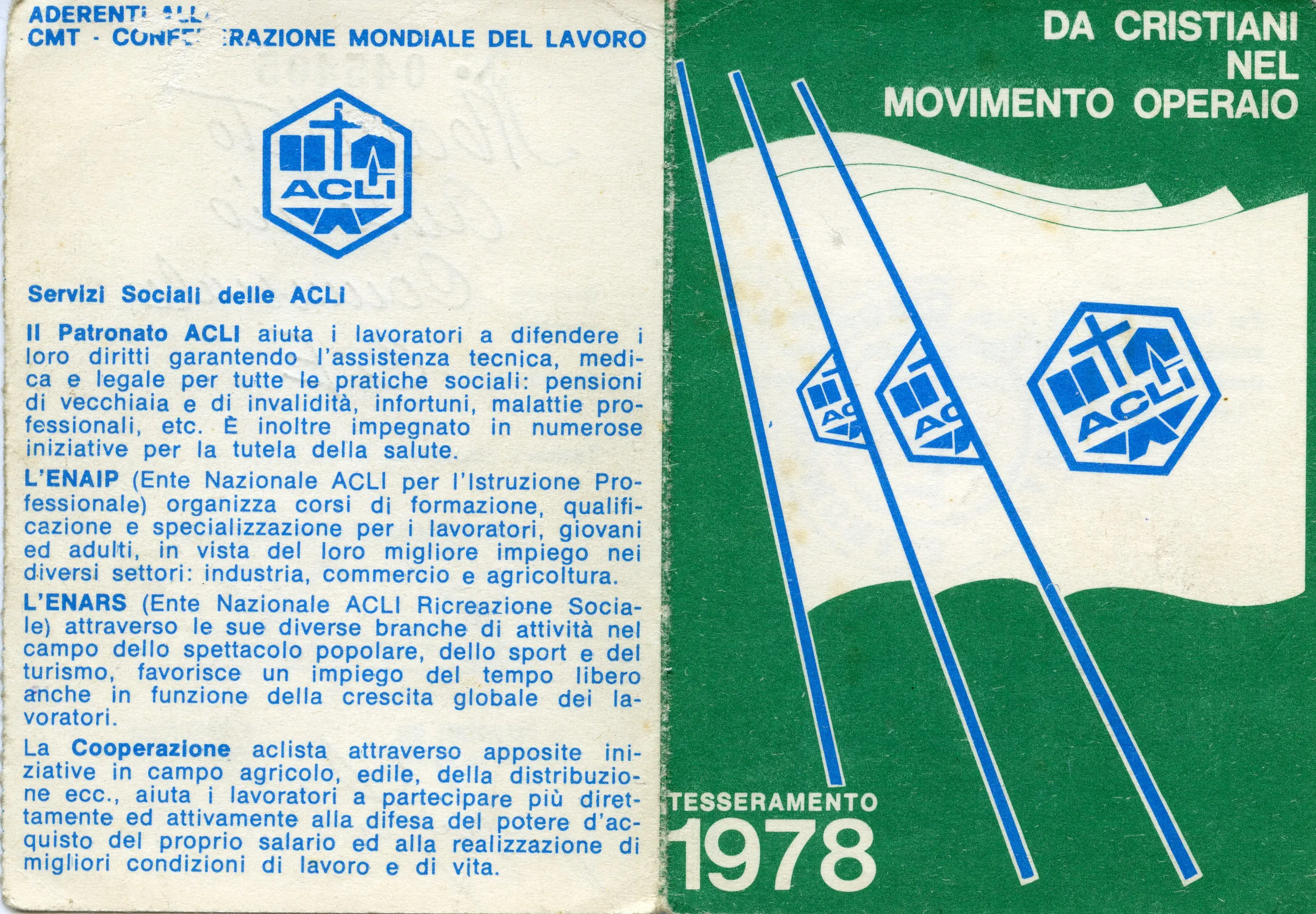 Le tessere delle ACLI della seconda metà degli anni Settanta riguardano il periodo delle prime due presidenze di Domenico Rosati, eletto il 30 maggio del 1976 dal Consiglio Nazionale in sostituzione del dimissionario Marino Carboni e rieletto al XIV Congresso Nazionale (Bologna, 15-18/6/1978).