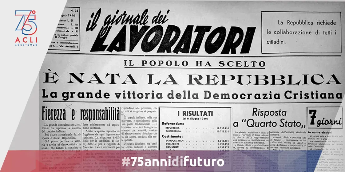 Il “Giornale dei Lavoratori” in vista delle imminenti elezioni dedica ai problemi della Costituente un numero speciale, nell’editoriale il Presidente Nazionale delle ACLI Ferdinando Storchi scriveva: «Ma quel che più importa oggi sottolineare è che non già dal volere dispotico del dittatore dipenderà il nostro domani. […]” target=”_blank”>tecipano con entusiasmo alla nascita della Democrazia repubblicana.