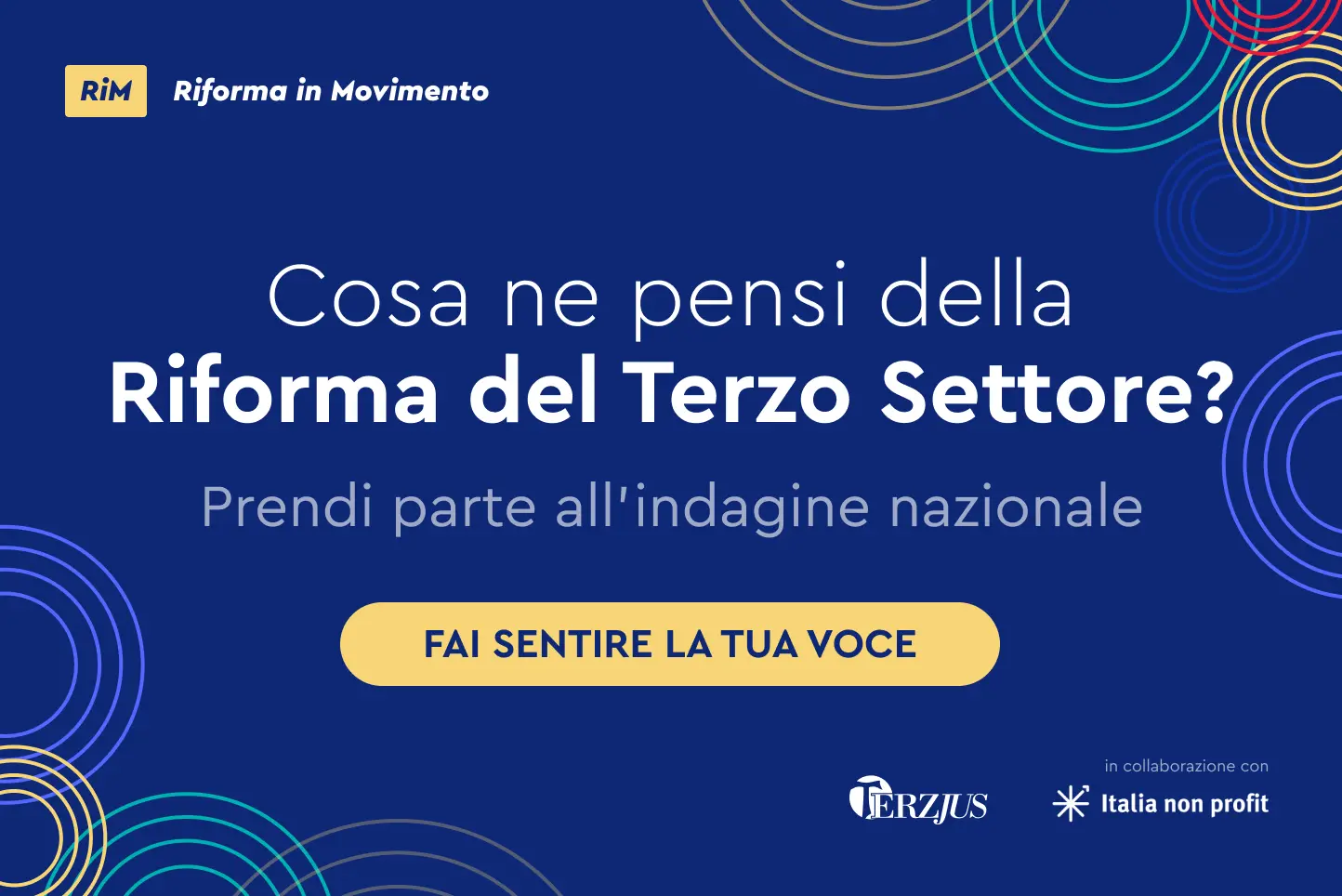 A più di tre anni dalla nascita della Riforma del Terzo Settore, è ora di fare il punto con chi il Terzo Settore lo vive quotidianamente. Per questo nasce Riforma in Movimento (https://italianonprofit.it/riforma-in-movimento/), l’iniziativa promossa da Terzjus-Osservatorio di diritto del Terzo Settore, della filantropia e dell’impresa sociale, in collaborazione con Italia non profit volta a promuovere la partecipazione e l’ascolto del non profit italiano. Un vero e proprio lavoro di “indagine e riflessione” dove, per la prima volta, si chiede al Terzo Settore di esprimersi con fatti, opinioni, giudizi, idee, preoccupazioni e proposte sulla Riforma. Destinatari potenziali della ricerca sono le diverse tipologie di Enti del Terzo Settore comprese le loro reti associative e di rappresentanza.