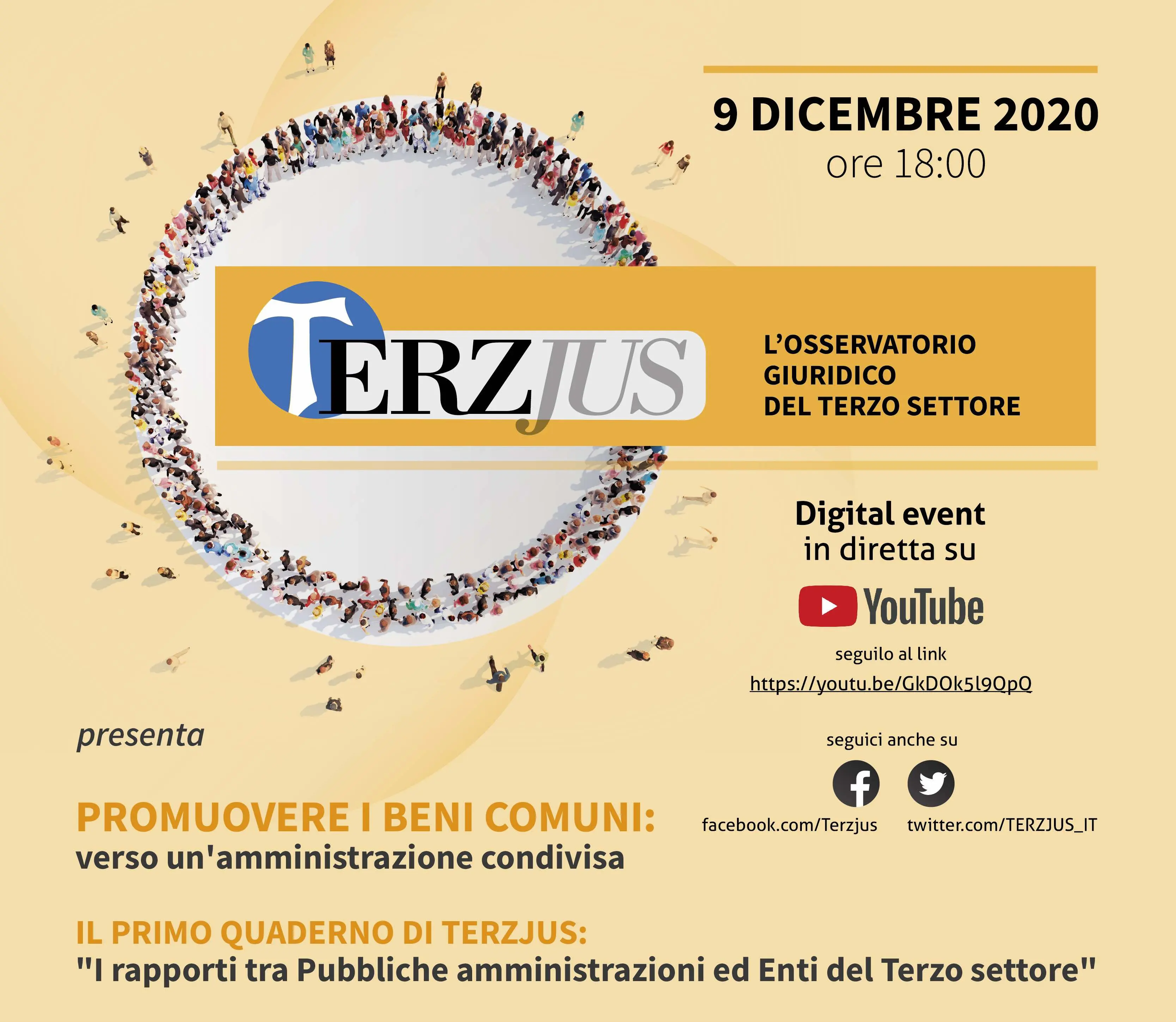 Mercoledì 9 dicembre alle ore 18, Terzjus – l’Osservatorio giuridico del terzo settore – ritorna a pochi mesi dalla nascita con un incontro intitolato: “Promuovere i beni comuni:verso un’amministrazione condivisa”. E lo fa partendo dalla presentazione del primo Quaderno dedicato a “ I rapporti tra Amministrazioni pubbliche ed Enti del Terzo Settore”, a cura di Antonio Fici, Luciano Gallo e Fabio Giglioni – Editoriale Scientifica Napoli.