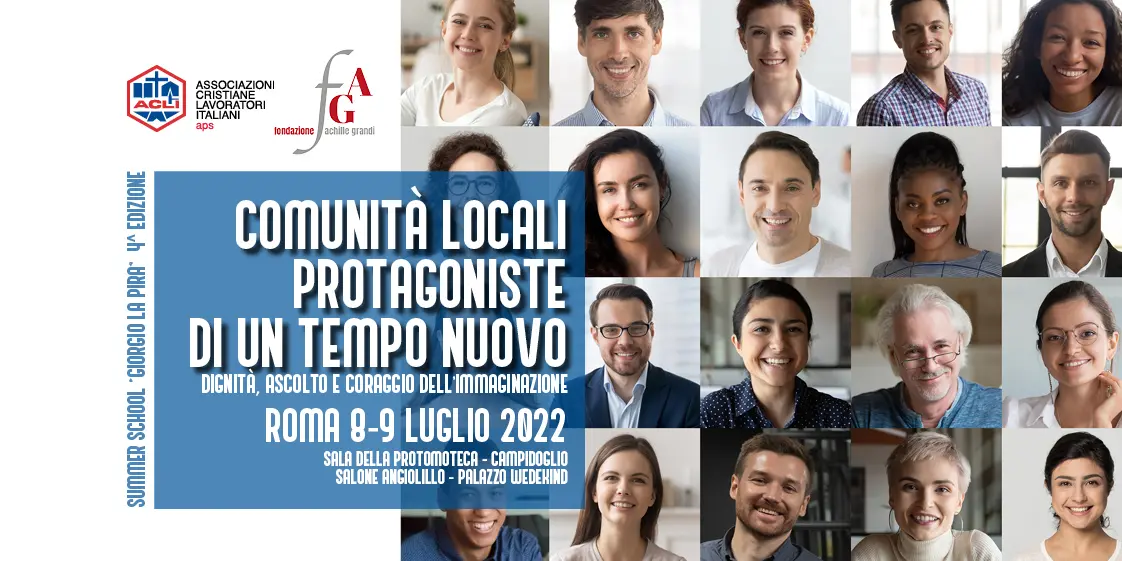 L’8 e il 9 luglio a Roma le Acli, insieme alla Fondazione Achille Grandi, daranno il via alla quarta edizione della Summer School Giorgio La Pira, due giornate di formazione e di confronto per condividere e progettare nuove idee per il buon governo e per il bene comune. Il tema di quest’anno sarà “Comunità locali, protagoniste di un tempo nuovo: dignità, ascolto e coraggio dell’immaginazione” e sarà sviluppato attraverso tre sessioni di lavoro. Le Acli, insieme a docenti, amministratori locali, rappresentanti delle istituzioni ed esperti proporranno strumenti di governo e di riforma per il bene comune, rifletteranno sugli scenari politici e favoriranno lo scambio di buone pratiche.